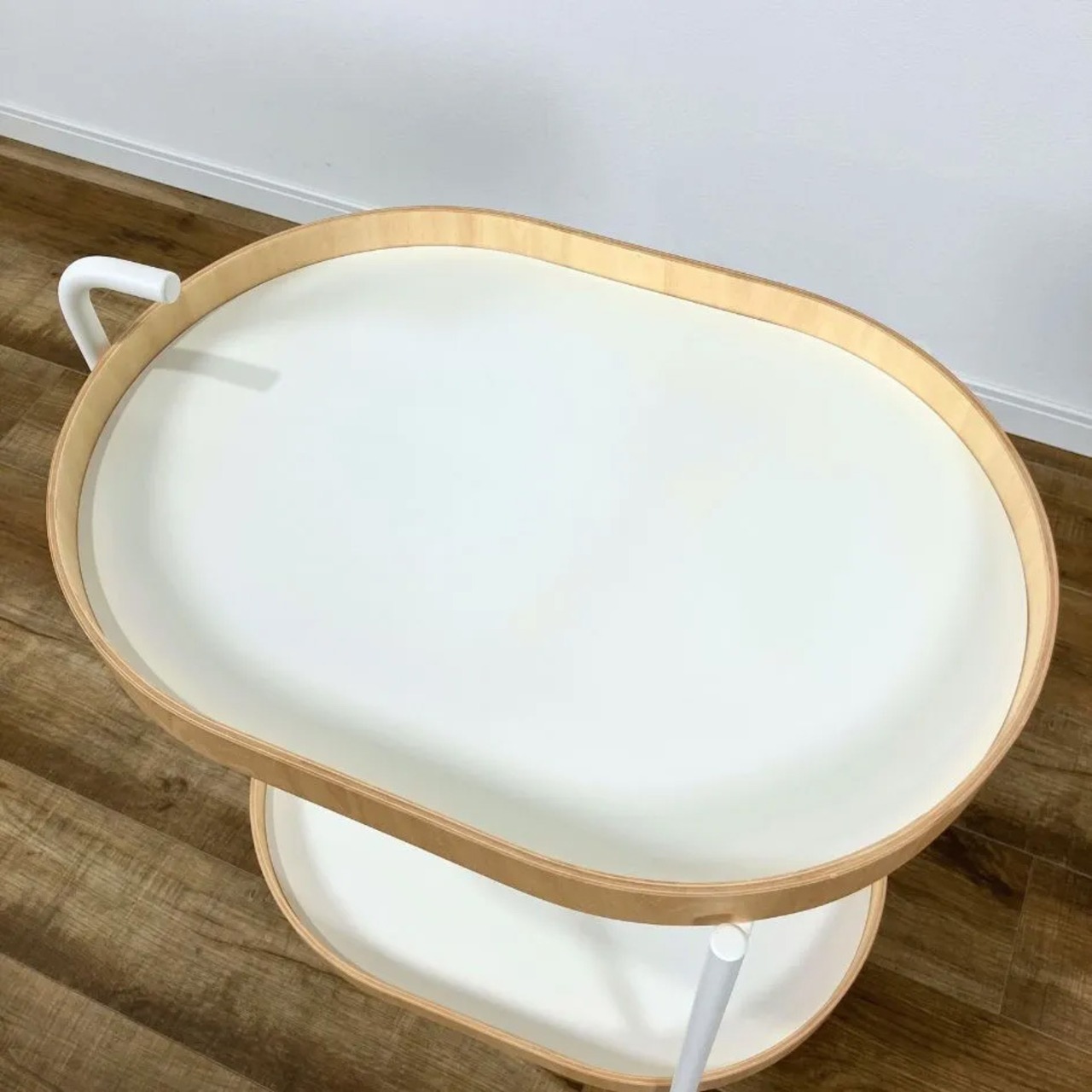 キッチンとダイニングをつなぐモビリティ、上下段とも取り外しができるトレイの機能性や少し小さめのサイズが日常使いにちょうどいい。